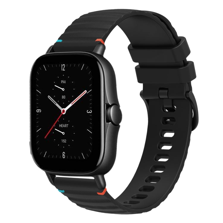 Correa de Silicona 20mm para Reloj Amazfit GTS 2E con Puntadas Onduladas y Puntos (Negra)