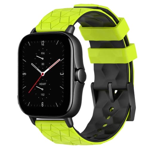 Banda de Reloj para Amazfit GTS 2E 20mm Silicona Textura de Fútbol Dos Colores (Verde Lima + Negro)