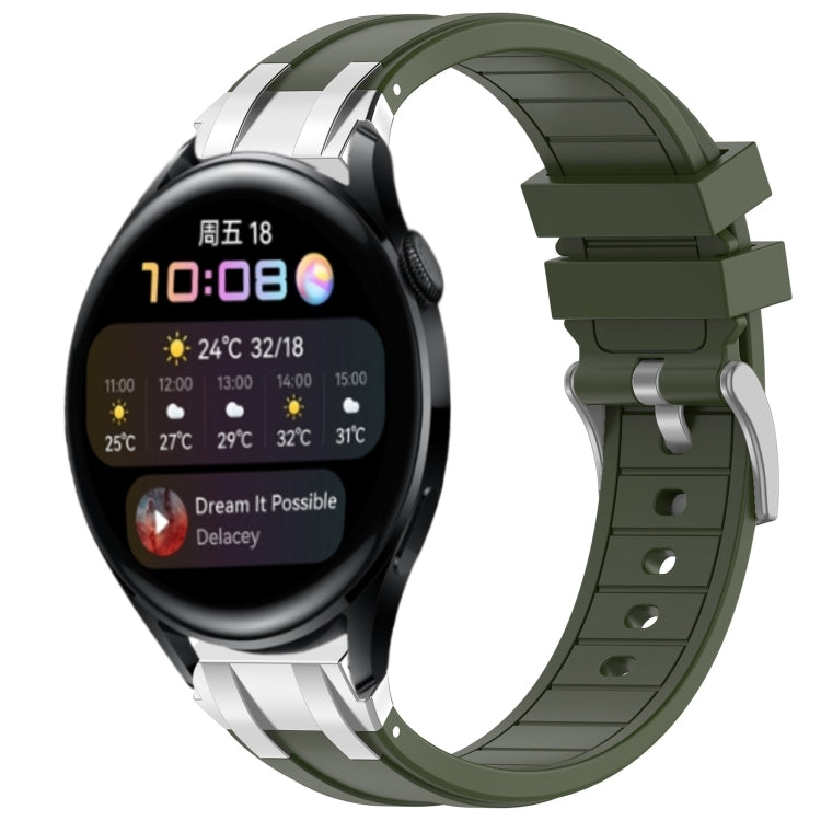 Correa de Silicona Huawei Watch 3 22mm con Hebilla Plateada Liberación Rápida (Verde Oliva)