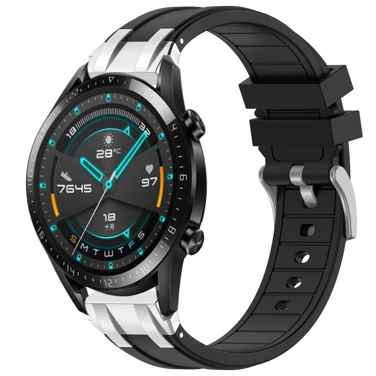 Correa de Silicona para Reloj Huawei Watch GT2 46mm 22mm con Hebilla Plateada (Negra)