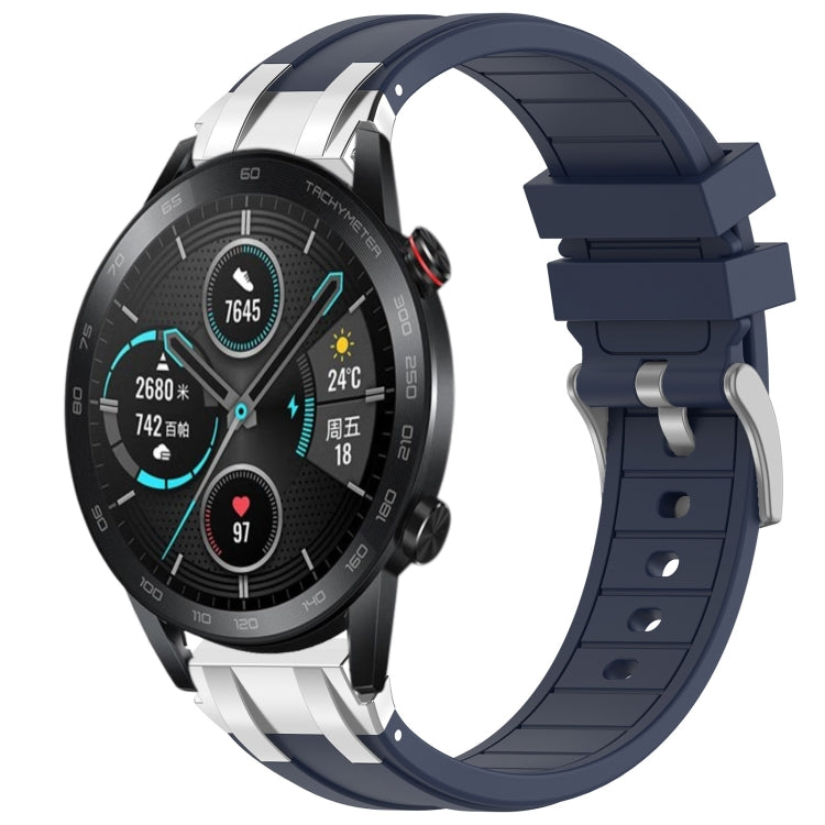 Correa de Silicona For Honor Magic Watch 22mm con Hebilla Plateada de Liberación Rápida (Azul Marino)