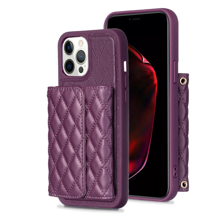 Funda de Cuero para Teléfono iPhone 12 Pro Max Vertical Wallet Rhombic (Púrpura Oscuro)