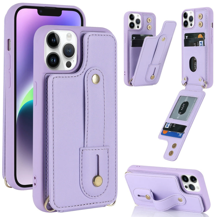 Funda para iPhone 12 Pro Max Vertical Flip Wallet con Wristband (Púrpura)