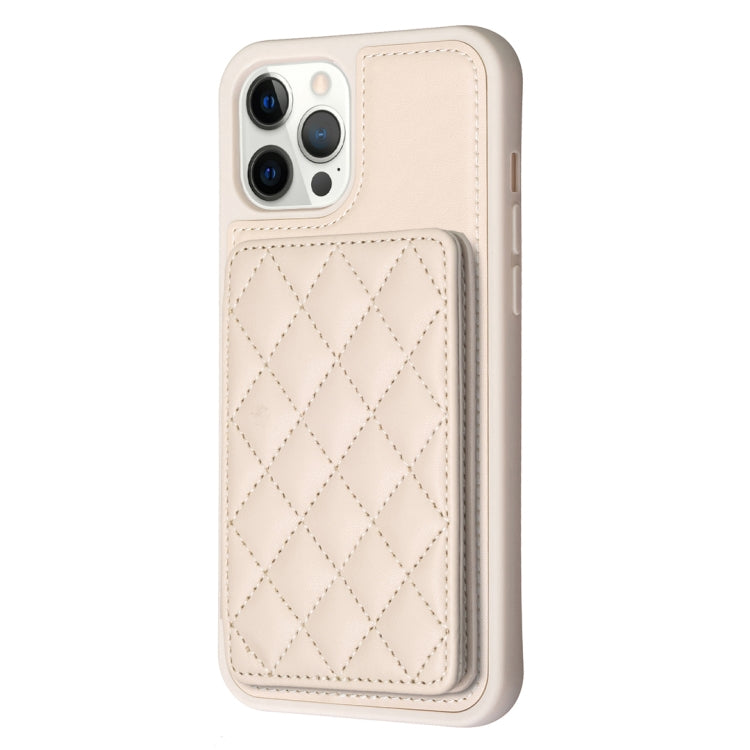 Funda para iPhone 12 Pro Max BF25 Square Plaid Card Bag Holder Phone Case (Beige)