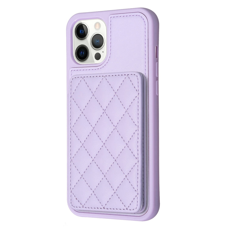 Funda para iPhone 12 Pro Max Bf25 Square Plaid Card Bag Holder Phone Case (Púrpura)