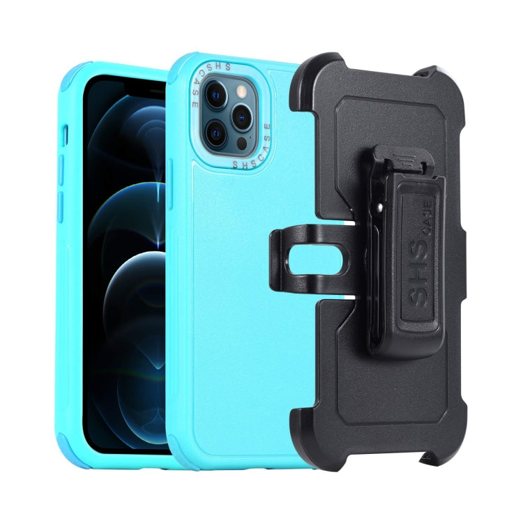Funda para Teléfono iPhone 12 Pro Max 3 En 1 PC y TPU con Funda Deslizante (Azul + Azul Cielo)