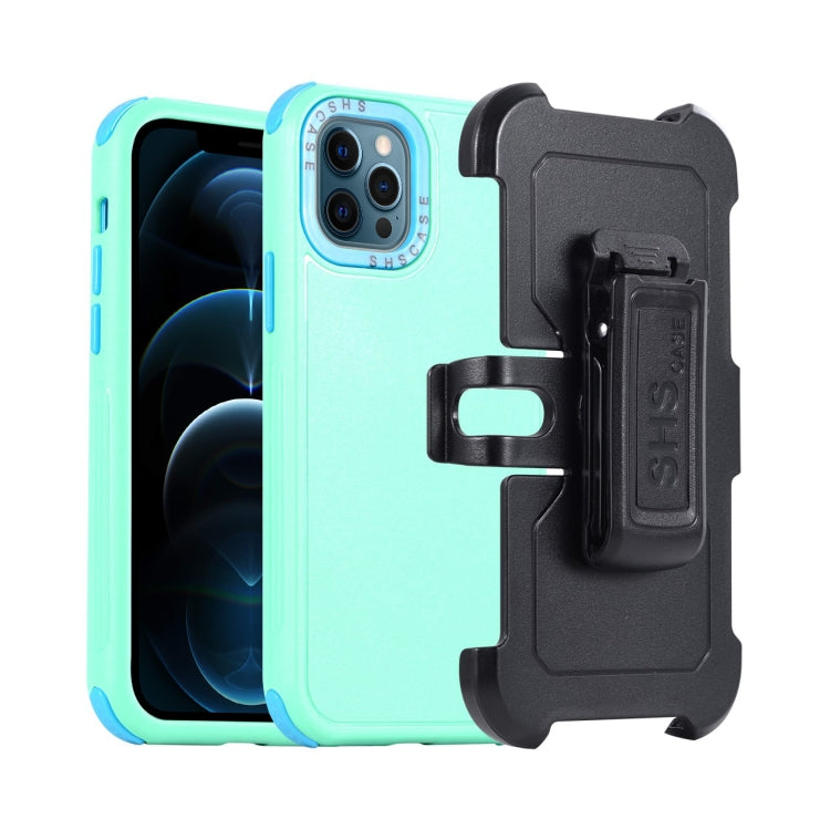 Funda para Teléfono iPhone 12 Pro Max 3 en 1 PC y TPU con Funda Deslizante (Verde Hierba + Azul Cielo)