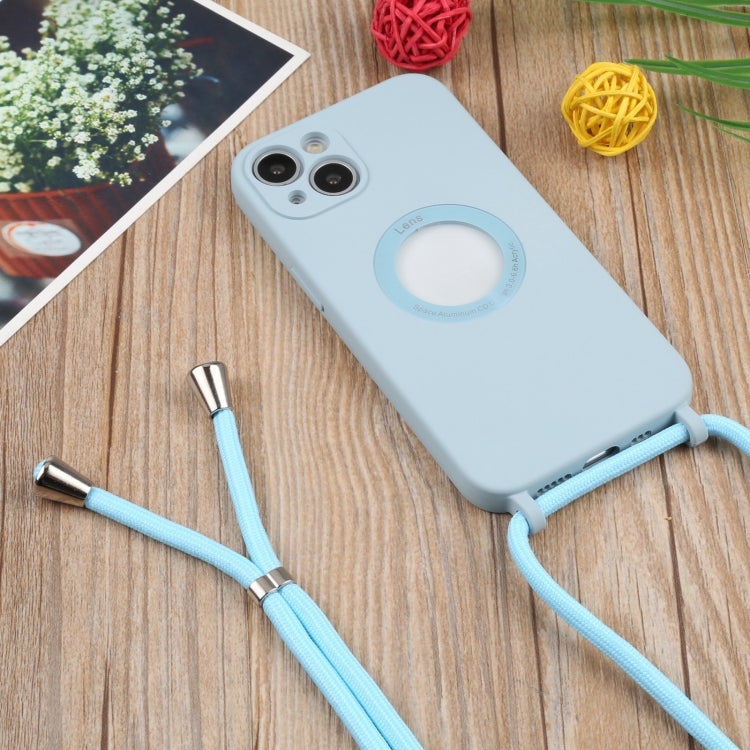 Funda Telefónica Acrílico Hollow Out con Cordón para iPhone 13 Mini (Sky Blue)