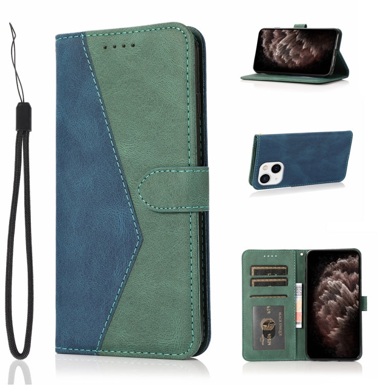 Funda de Teléfono iPhone 13 Mini Cuero Costuras Dos Colores (Azul Verde)