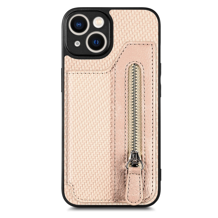 Funda de teléfono para iPhone 13 Mini con cremallera y tapa horizontal de fibra de carbono (Caqui)