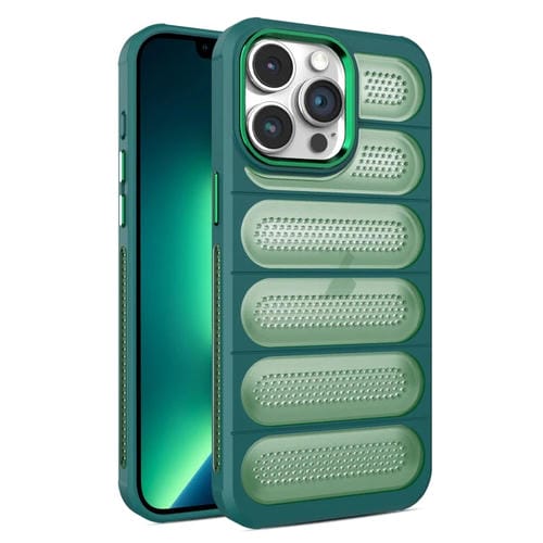 Funda para teléfono iPhone 13 Pro Cooling Armor transpirable malla translúcida (Verde)