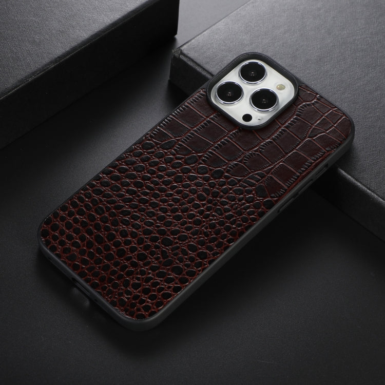 Estuche para iPhone 13 Pro Cuero de Piel de Vaca con Capa Superior de Cocodrilo (Café)