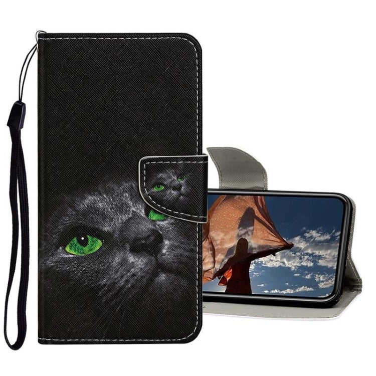 Funda de Cuero con Tapa para iPhone 13 Pro con Patrón de Dibujo a Color (Gato Negro)