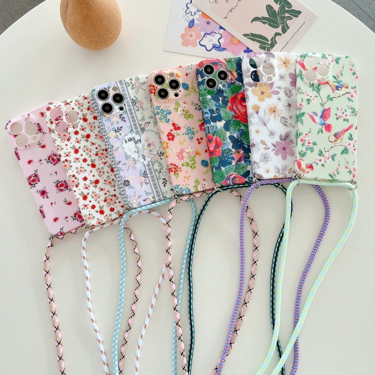 Funda para iPhone 13 Pro Lanyard Small Floral TPU Phone Case (Verde)