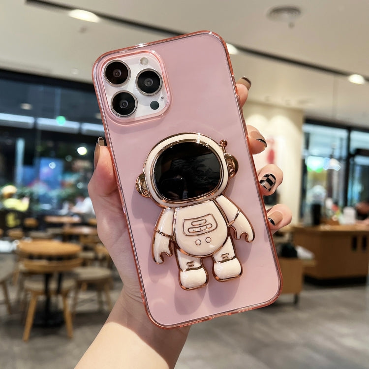 Funda de Teléfono TPU Plating Astronaut Holder para iPhone 13 Pro (Rosa)