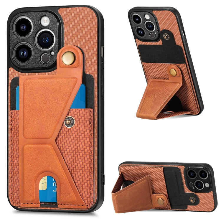 Funda para iPhone 13 Pro Carbon Fiber Wallet Flip Card con Soporte en Forma de K (Marrón)