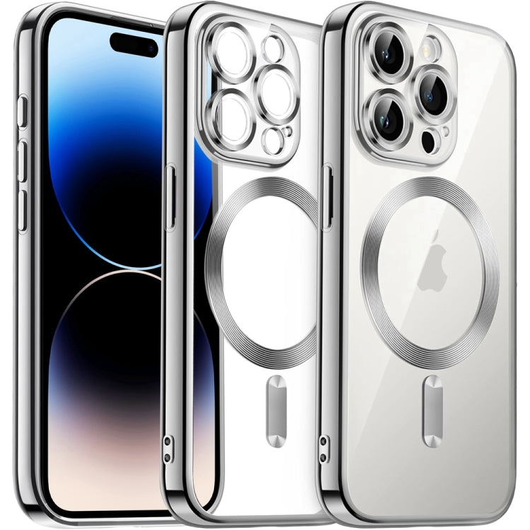 Funda para teléfono iPhone 14 Pro Max TPU Electrochapada Transparente Magnética (Plata)