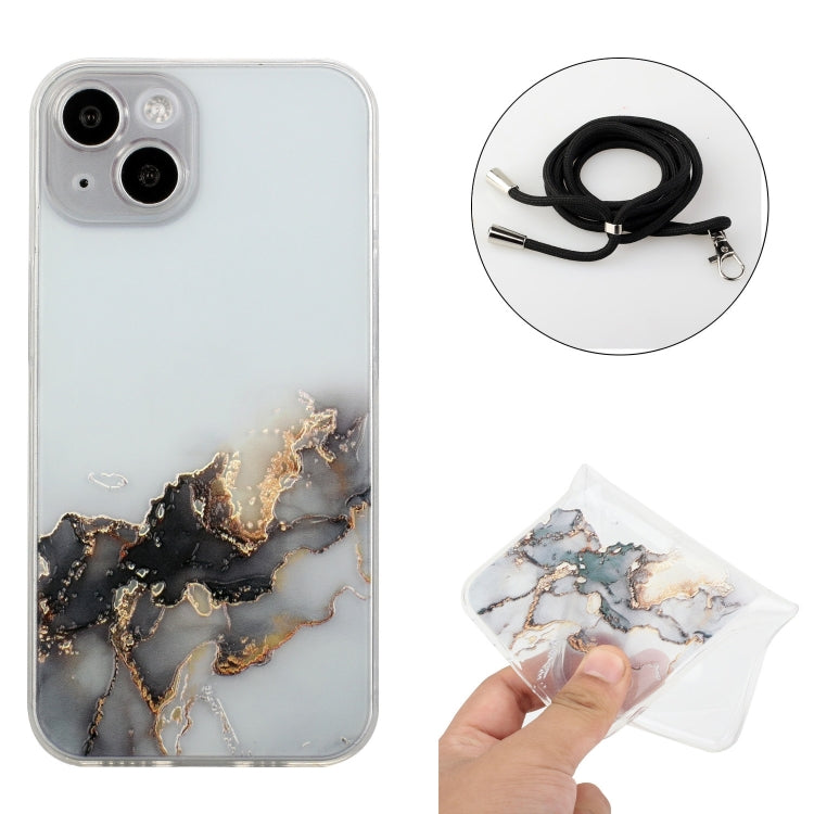 Funda para teléfono iPhone 15 Plus TPU Hollow Marble Pattern a prueba de golpes con cuerda (Negro)