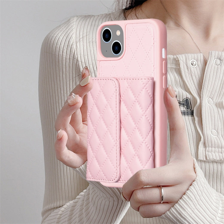 Funda para Teléfono Bf25 Square Plaid Card Bag Holder para iPhone 15 Plus (Rosa)