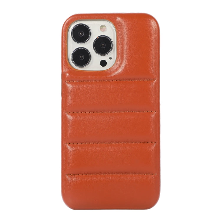Estuche para Teléfono iPhone 15 Plus Down Jacket Airbag a Prueba de Golpes (Marrón)