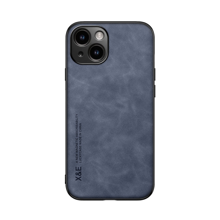 Funda para iPhone 15 Plus Skin Feel Magnetic Leather Back Phone Case (Azul)