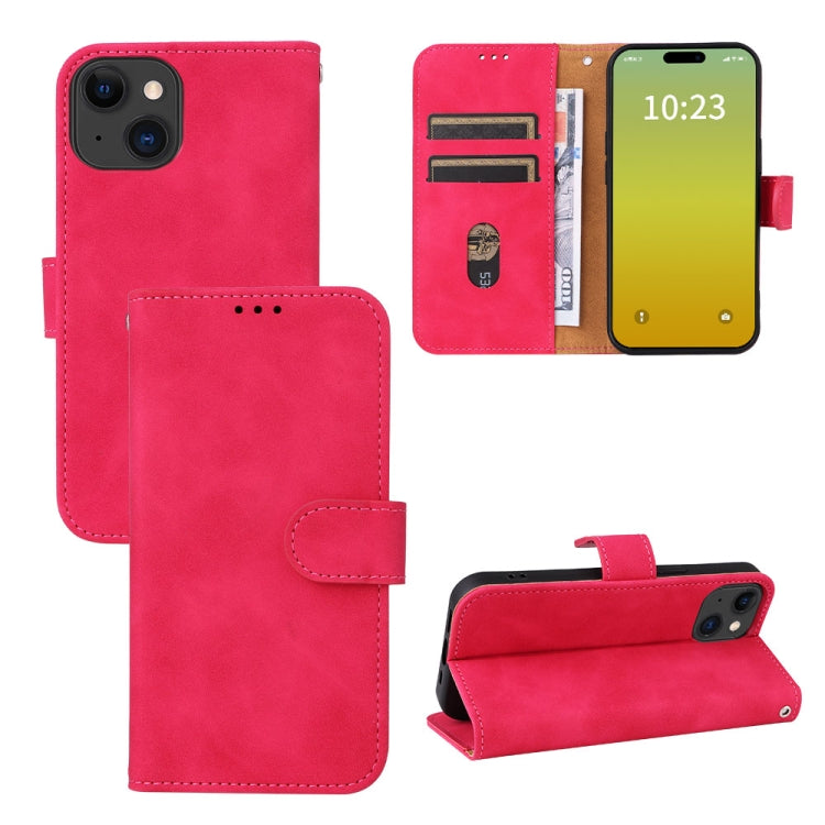 Funda para iPhone 15 Plus Skin Feel Magnetic Flip Leather Phone Case (Rose Red)