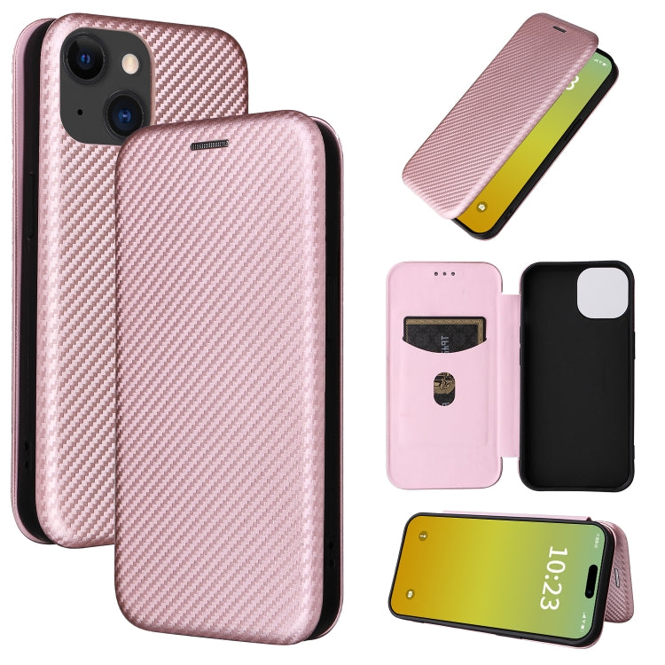 Funda de teléfono iPhone 15 Plus Cuero con textura de fibra de carbono (Rosa)