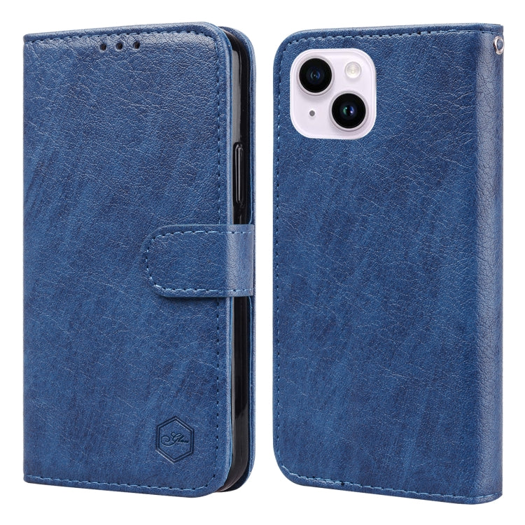 Funda para iPhone 15 Plus PU + TPU Textura de Cuero Aceitoso Sensación de Piel (Azul Oscuro)