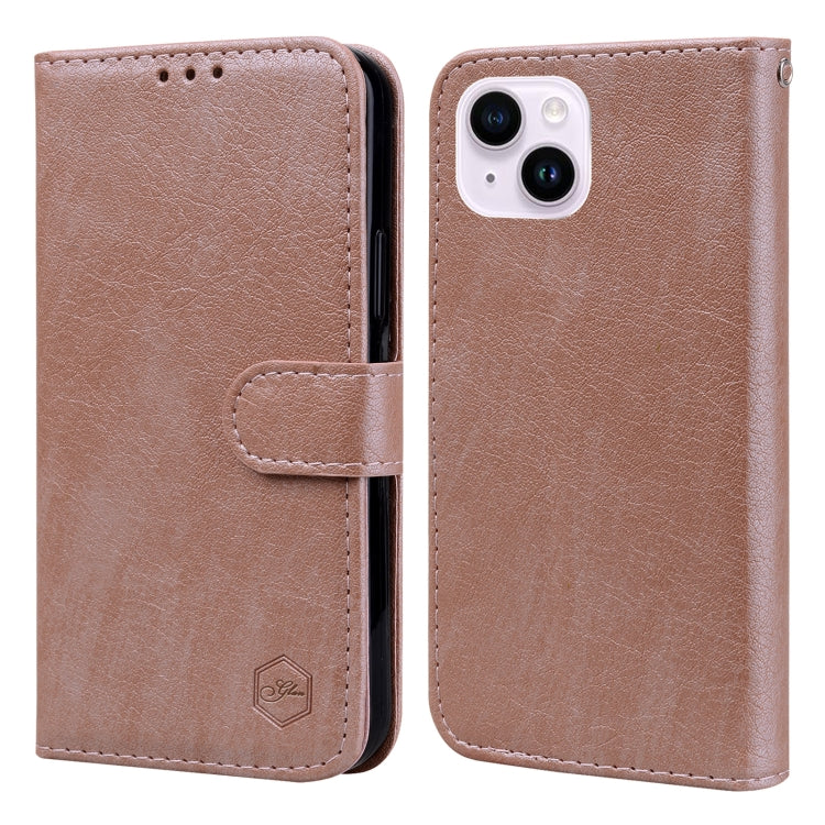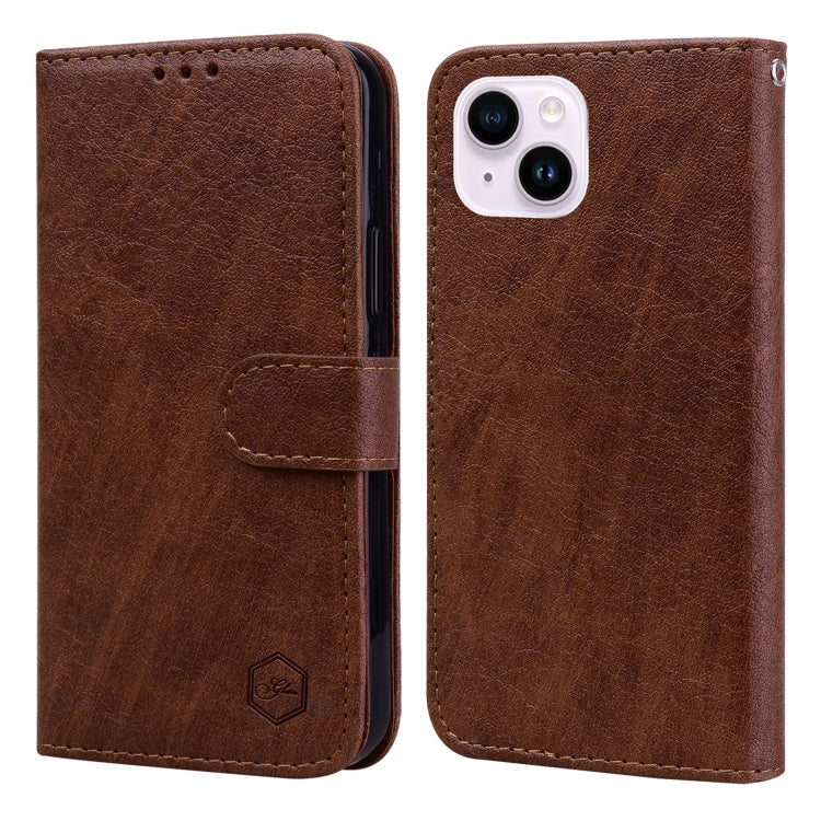 Funda para teléfono iPhone 15 Plus Textura de Cuero Aceitoso PU + TPU (Marrón)