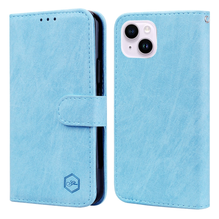 Funda para iPhone 15 Plus Imitate Liquid Skin Feel Leather con Ranuras para Tarjetas (Azul)