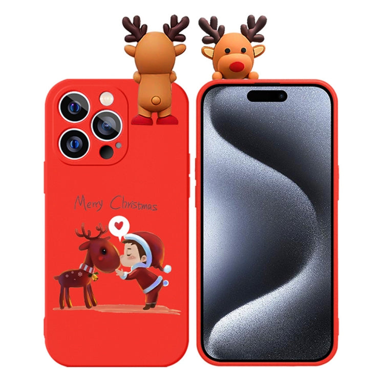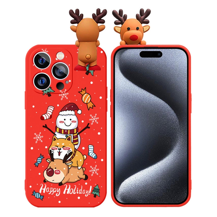 Funda para iPhone 15 Pro Max TPU Suave Dibujo Ciervos y Muñecos en Relieve (Muñeco de Nieve y Ciervos)
