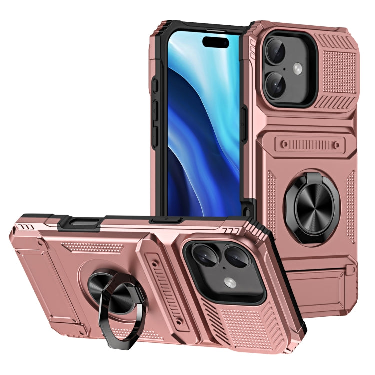 Funda para iPhone 16 Plus TPU+PC a Prueba de Golpes con Soporte de Anillo de Metal (Oro Rosa)