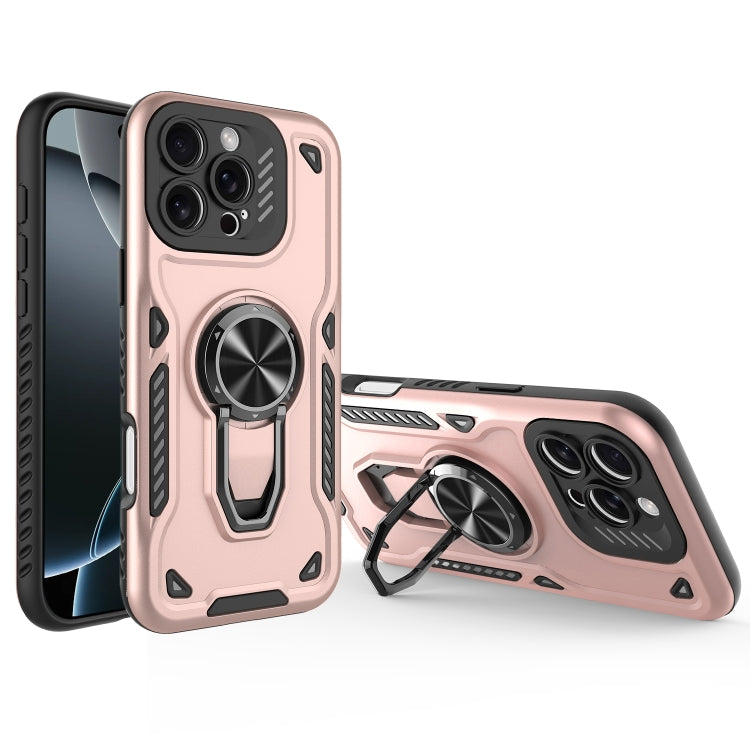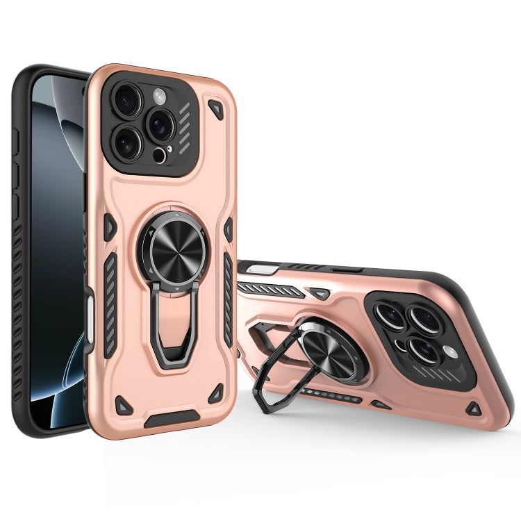 Funda para Teléfono iPhone 16 Pro Max Soporte Giratorio Metal TPU PC Magnético (Oro Rosa)
