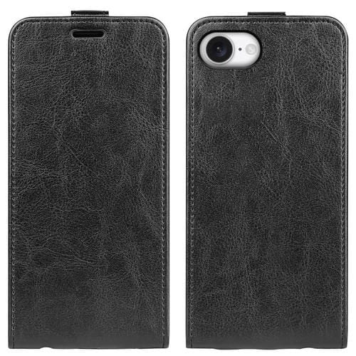 Funda de Cuero con Tapa Vertical Simple Textura R64 para iPhone 16E (Negro)