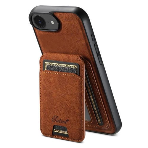 Funda para iPhone 16E Suteni H03 Piel de Lichi TaRJetero y Atril (Marrón)