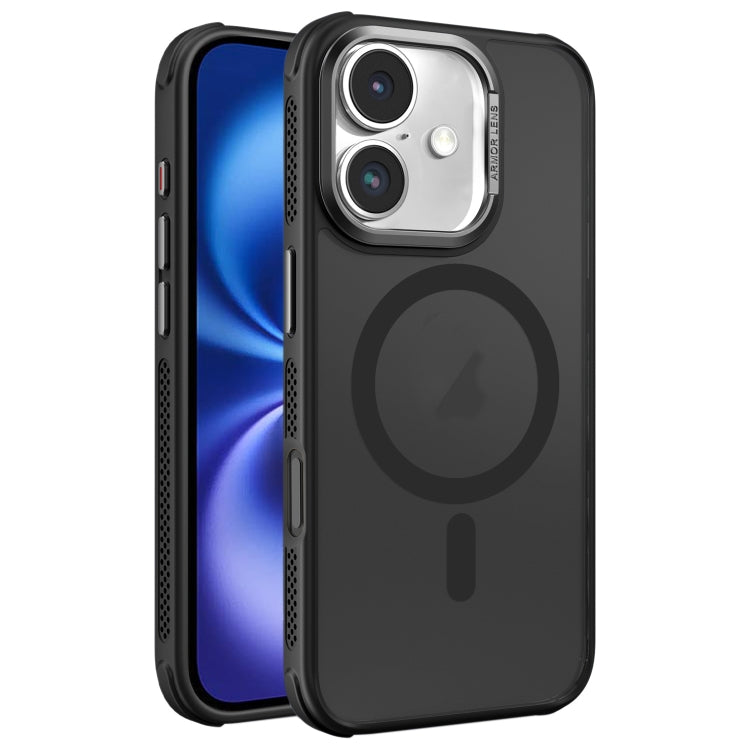 Estuche para Teléfono Magsafe iPhone 16 Marco Lente Metal Esmerilado Piel Enfriamiento (Negro)
