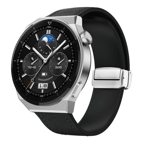 Correa de Reloj Cuero y Silicona 22mm con Hebilla Plateada Magnética (Negra)