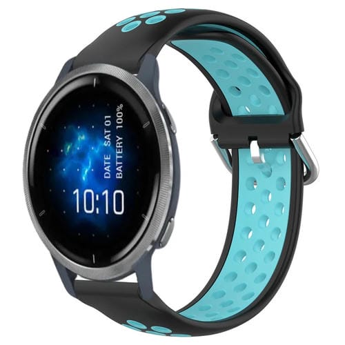 Correa de Reloj de Silicona Deportiva para Garmin Venu 20mm Transpirable Perforada (Negro + Azul)