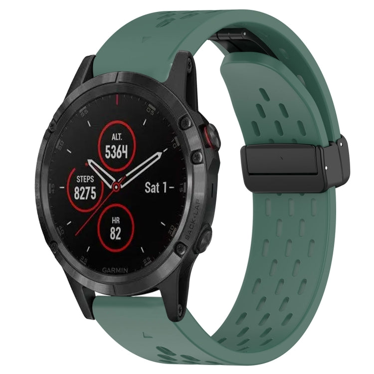 Correa de Reloj de Silicona para Garmin Fenix 5 con Orificio y Hebilla Plegable 22mm (Verde Oscuro)