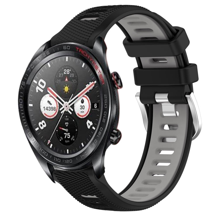 Correa de Reloj For Honor Watch Dream 22mm Deportes silicona dos colores hebilla acero (Negro + Gris)