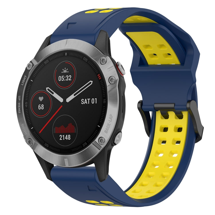 Correa de Reloj Garmin Fenix 6 22mm Silicona Hebilla Inversa Dos Colores (Azul + Amarillo)