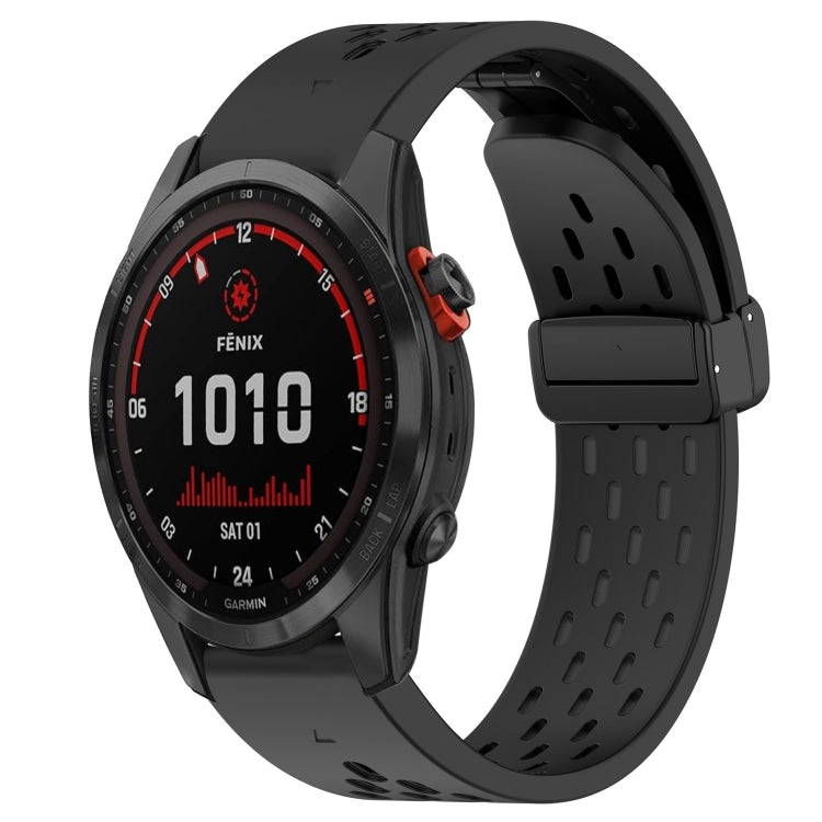 Correa de Reloj Garmin Fenix 7 Solar 22mm Silicona con Orificio y Hebilla Plegable (Negro)