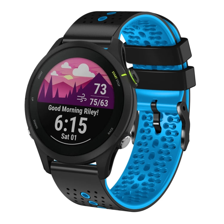 Correa de Reloj Garmin Forerunner 255 Music 22mm silicona perforada dos colores (Negro + Azul)