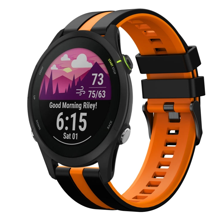 Correa de Reloj Garmin Forerunner 255 Music silicona deportiva dos colores 22mm (Negro + Naranja)