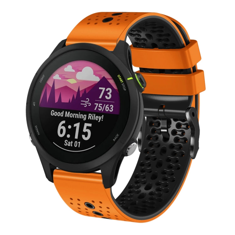 Correa de Reloj Garmin Forerunner 255 Silicona Bicolor Perforada 22mm (Naranja + Negro)