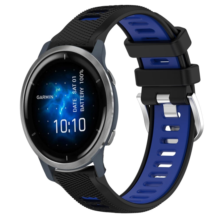 Correa de Reloj Garmin Venu 2 22mm Deportes Silicona Dos Colores Hebilla Acero (Negro + Azul)