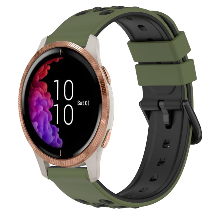 Correa de Reloj Garmin Venu 20mm Silicona Porosa Dos Colores (Verde Militar + Negro)