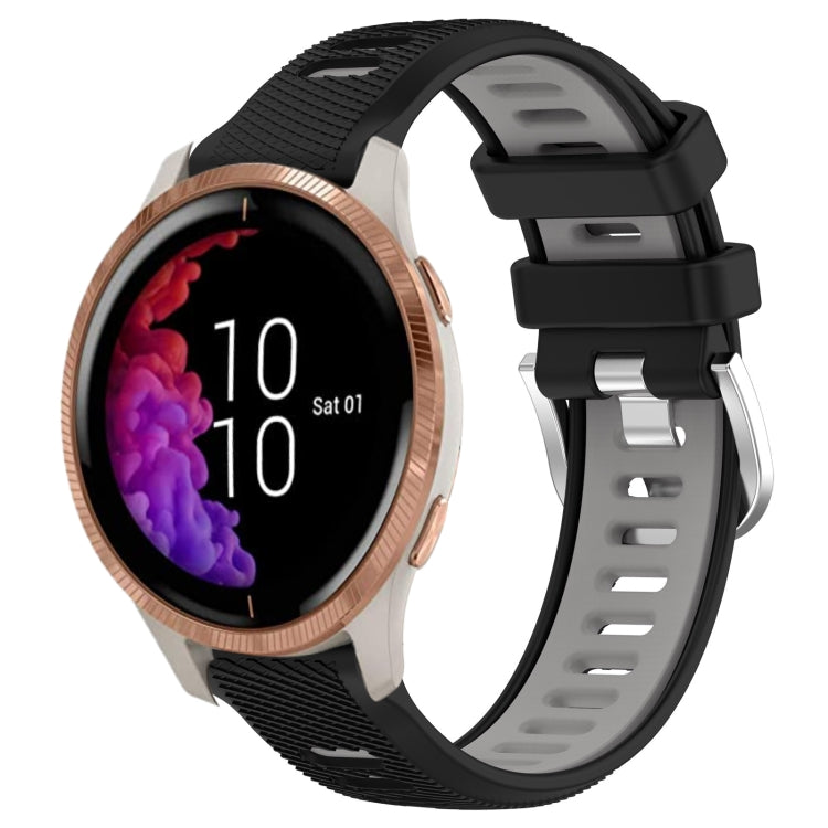 Correa de Reloj Garmin Venu 20mm Silicona Deportes Hebilla Acero (Negro + Gris)