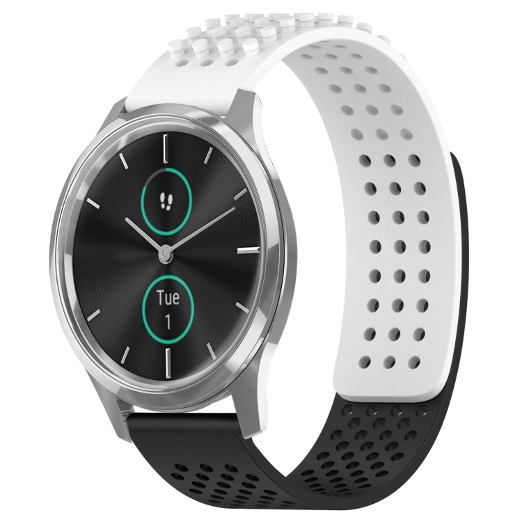 Correa de Reloj Garmin Vivomove Luxe Silicona Puntos 3D Transpirables Orificios 20mm (Blanco + Negro)