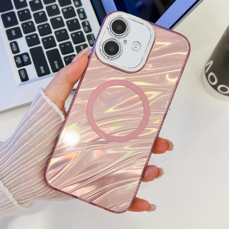 Funda TPU Magsafe Apple iPhone 16 Plus Textura Enchapada Purpurina (Ondas de Agua Rosadas)